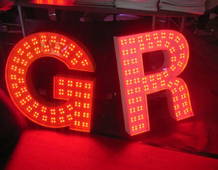 外露發(fā)光字又被稱為不銹鋼沖孔發(fā)光字、鈦金字、鋅鐵字等,分別由不銹鋼板,鈦金板,鍍鋅鐵板沖孔后,裝上LED防水燈串制作而成。在制作前要先選好材料,做什么字,選什么材料,根據(jù)字體大小,安裝的位置和客戶的要求,選擇相應(yīng)的板材,然后把整張的板材用機床進(jìn)行沖孔,然后用刻機對面板刻出字形,然后把刻好的字焊接成立體邊,再進(jìn)行打磨光滑,避免毛刺。然后就是噴烤油漆,油漆干后,就可以裝LED單顆燈串了,裝燈串的時候務(wù)必要考慮能夠方便接線,每顆燈用橡膠套做風(fēng)水處理,這么做也比較有利于后期對外露發(fā)光字進(jìn)行維護(hù)。