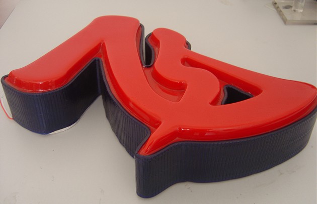 3、吸塑成型好后,就是用亞克力銑邊機(jī)進(jìn)行修邊等后續(xù)工序了。同時(shí),側(cè)面做好鐵皮烤漆邊,鋸出字內(nèi)徑同樣大小的PVC板做底板,粘上LED字,然后合起來,基本上就成了。